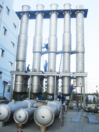 07.大型設備采用直立落地式結構,整套設備結構緊湊,占地面積小,布局簡單流暢,代表了大型成套蒸發(fā)設備的發(fā)展方面。